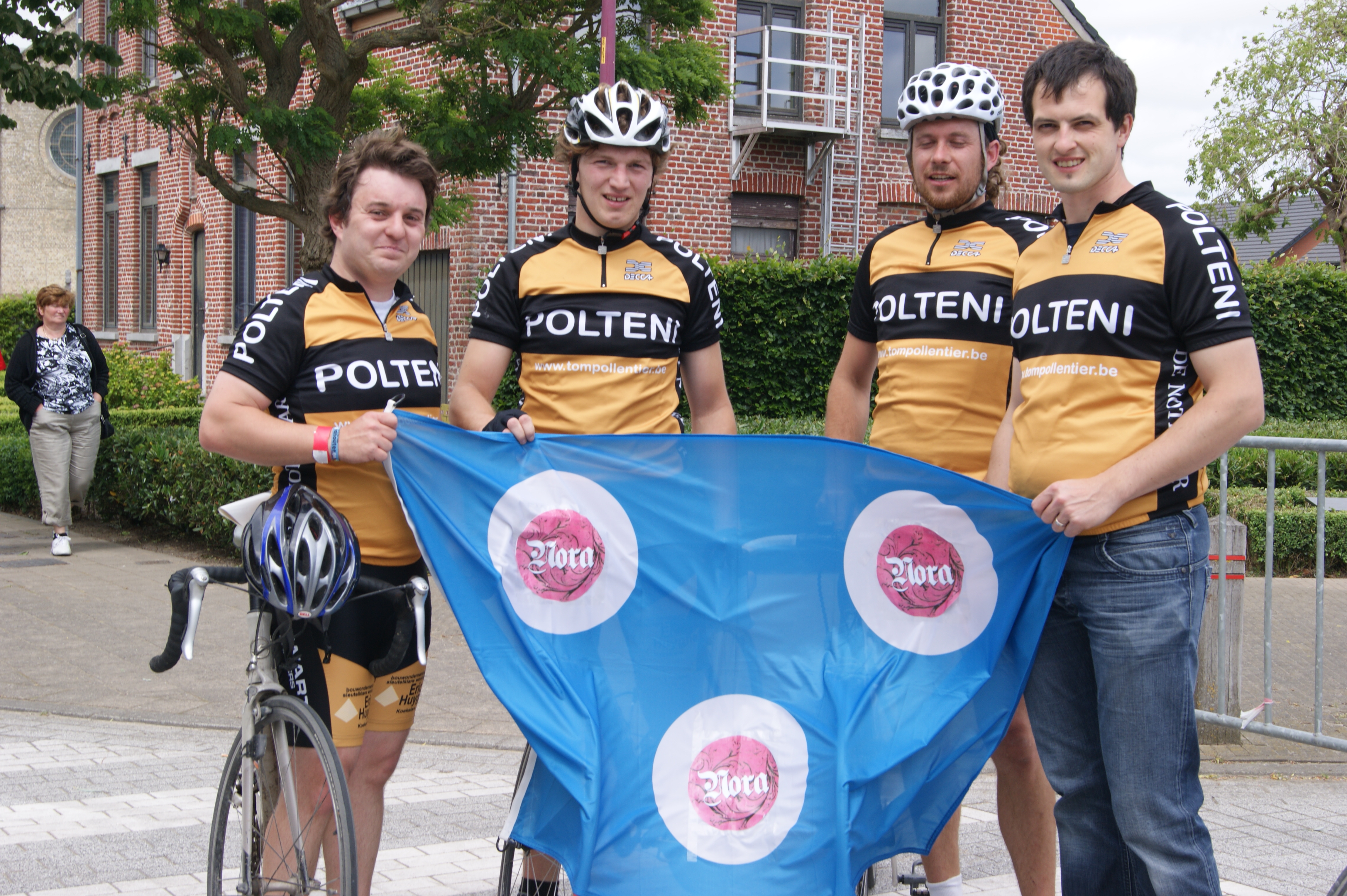 Onder het motto “deelnemen is belangrijker dan winnen” dragen zij de bijna-overwinning (het scheelde maar 12 renners, echt waar!) op aan Nora! Ze poseerden dan ook trots met de Nora vlag.