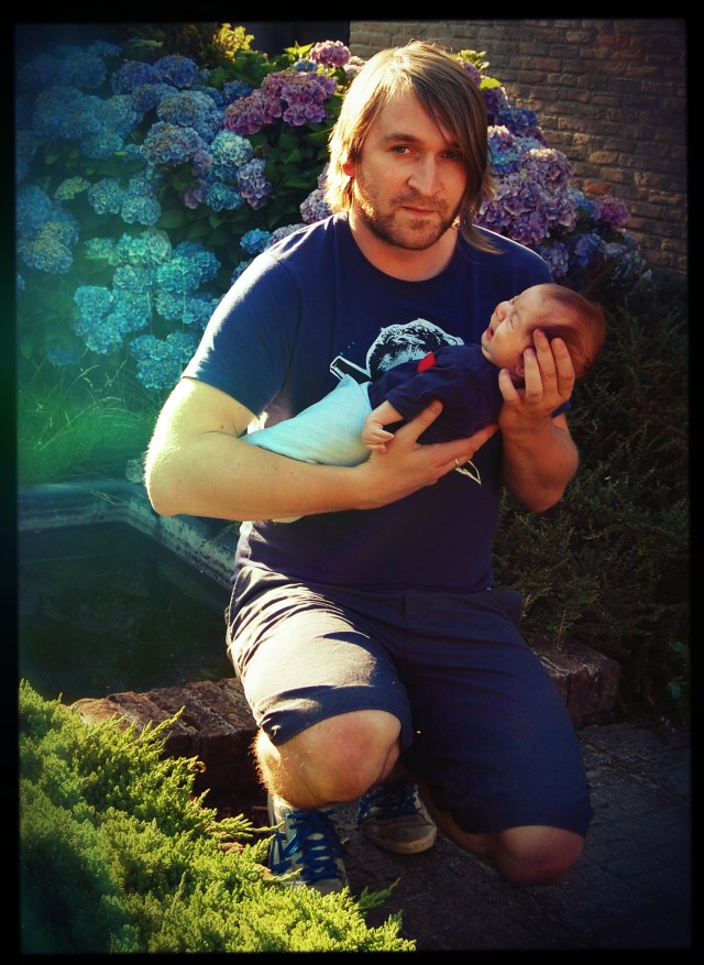 Dit initiatief werd in het leven geroepen op 30 juni 2010 om de aandacht te vestigen op Arthrogrypose. Wij staken voor de gelegenheid deze blog voor één dag in een blauw keurtje. Ook Nora trok haar beste blauwe pakje aan en poseerde samen met papa (ook in het blauw) voor de blauwe Hortensia’s. Het ‘mega cheesy’ resultaat vind je hieronder. Ik wil jullie er dan ook op wijzen dat het ‘in scène zetten’ van deze toch wel ‘bijzondere foto’ volledig Nele haar idee was 😉